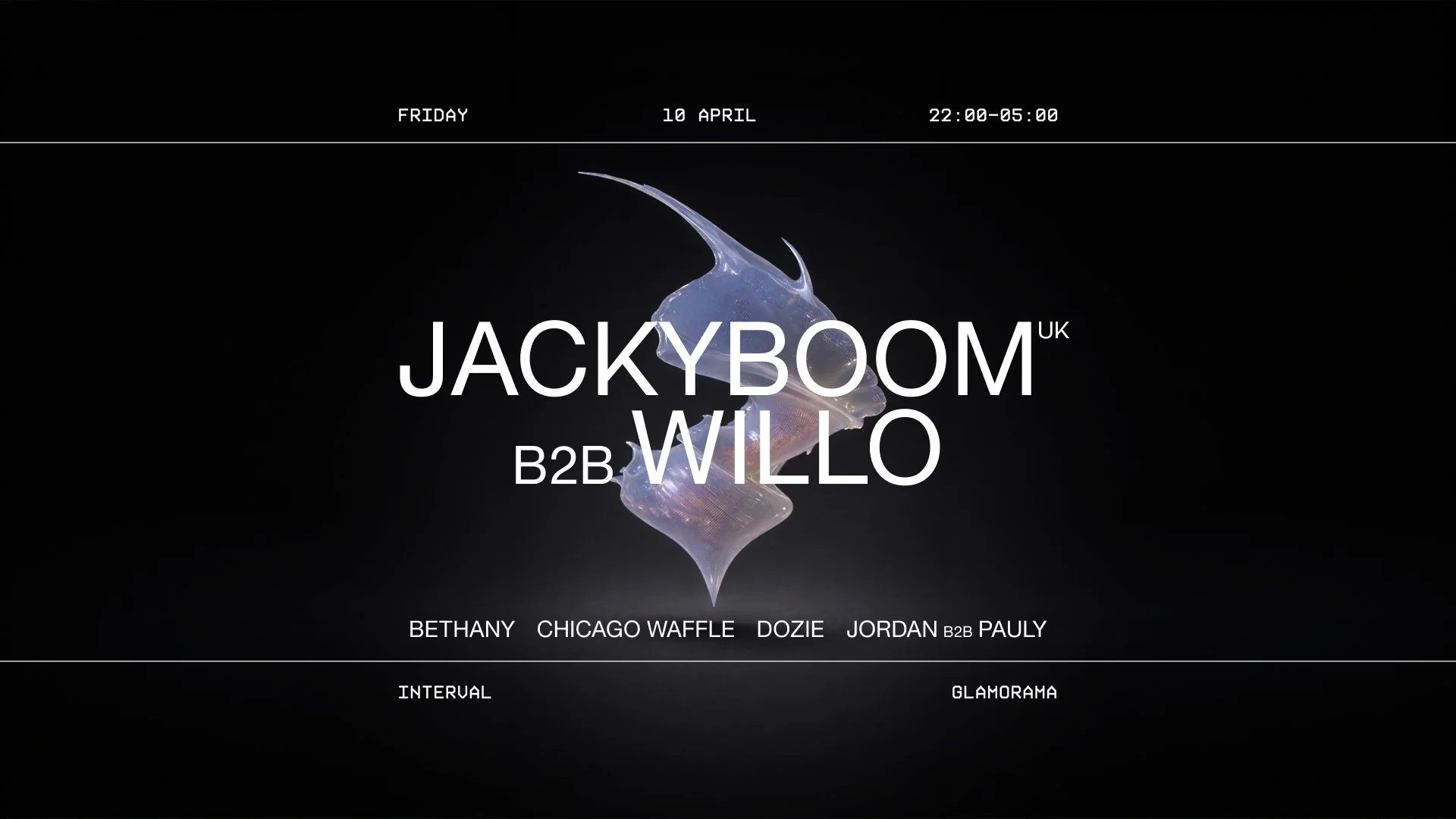 Interval - Jackyboom [UK] b2b Willo Friday 10 April 2026 10:00 pm Saturday 11 April 2026 5:00 am Glamorama Bar 393 Brunswick Street Fitzroy, VIC, 3065 Australia (map) Google Calendar ICS TICKETS